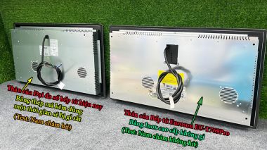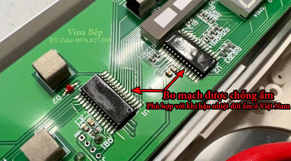 Infineon Germany, tổng bếp có 4 IGBT Mainboard độc lập cho 2 vùng nấu Linh kiện, bo mạch được phủ ẩm bảo vệ thêm |