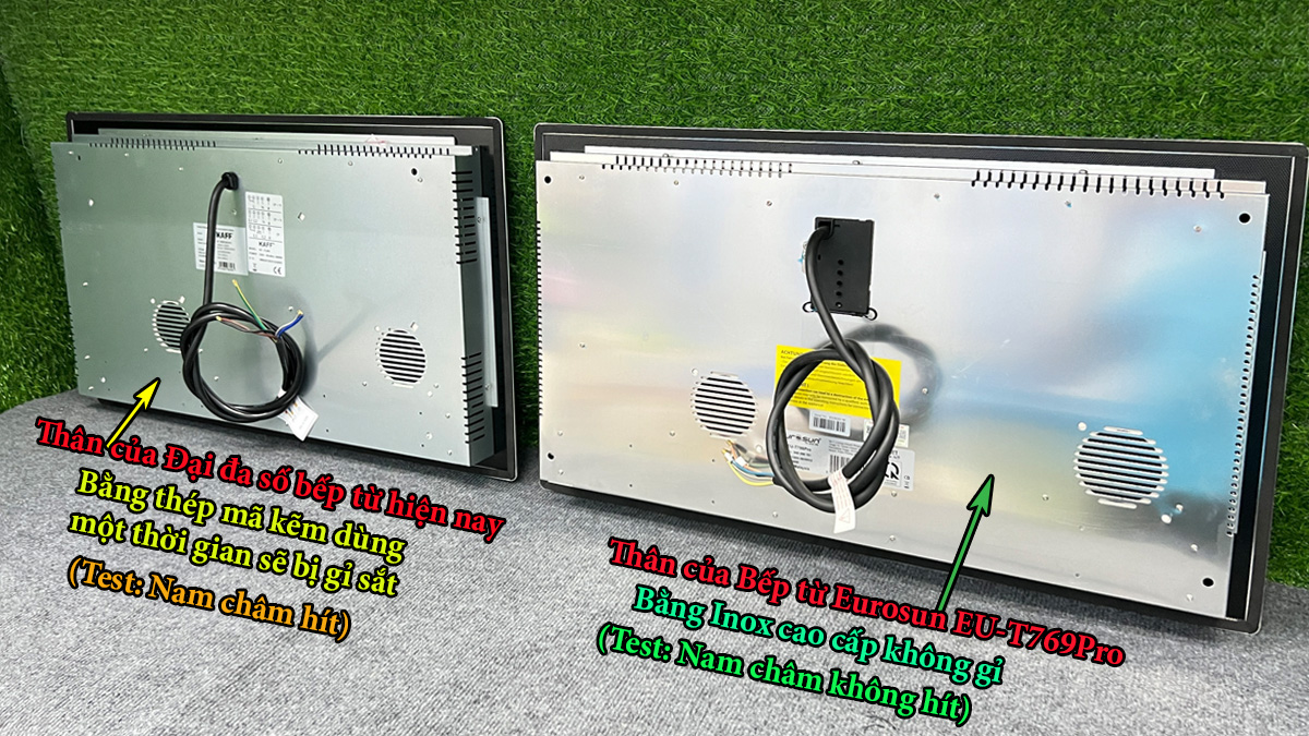 Bếp Eurosun EU-T769Pro được trang bị từ những linh kiện tốt nhất và chân bo mạch được phủ ẩm để bảo vệ thêm nên bếp rất bền. Ngoài ra, thân bếp của Bếp EU-T769Pro được làm bằng chất liệu Inox cao cấp không gỉ giúp bếp cũng bền hơn so với đại đa số thân bếp của các bếp từ hiện nay thường chỉ được làm bằng chất liệu thép mạ kẽm dễ bị gỉ sét sau 1 thời gian sử dụng.