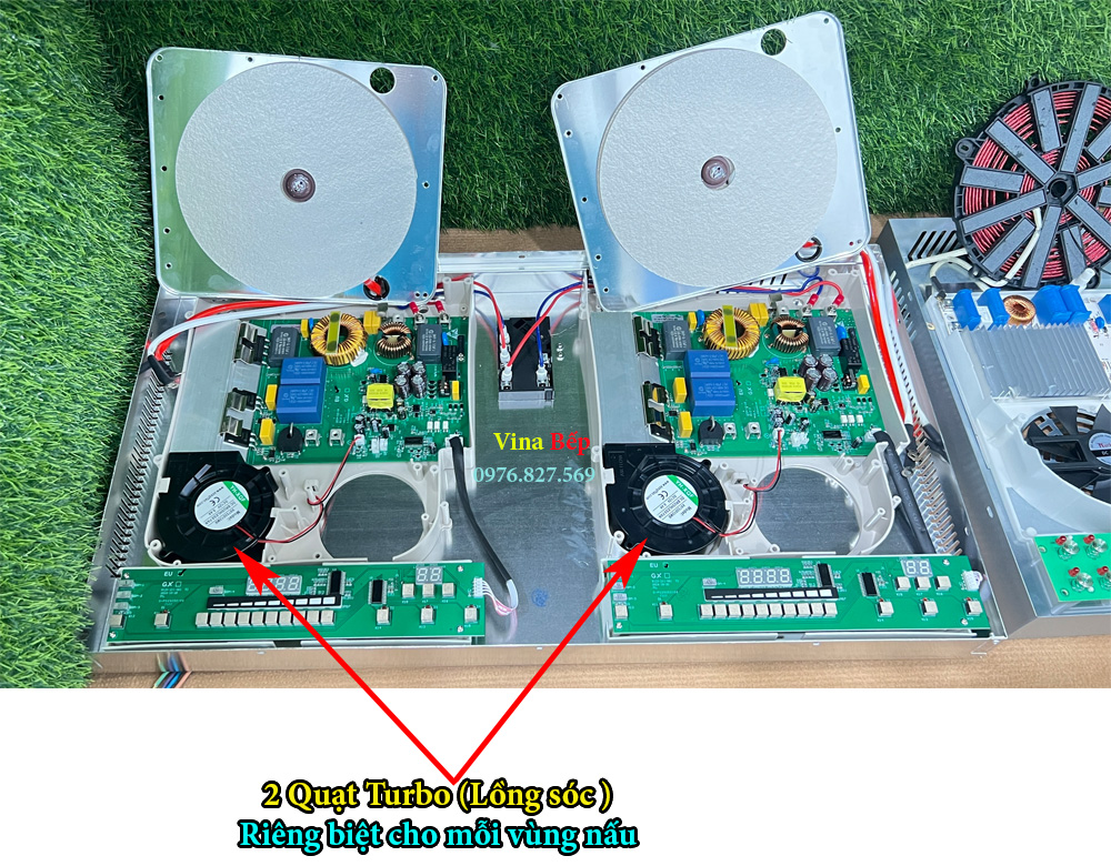 - 2 IGBT cho mỗi vùng nấu, tổng cộng 4 IGBT, x2 sức chịu tải