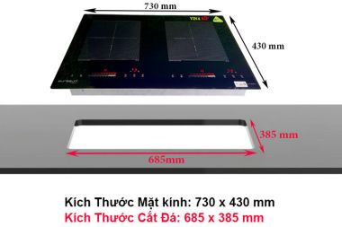 Kích thước khoét đá: (RxS) 685 x 385 mm