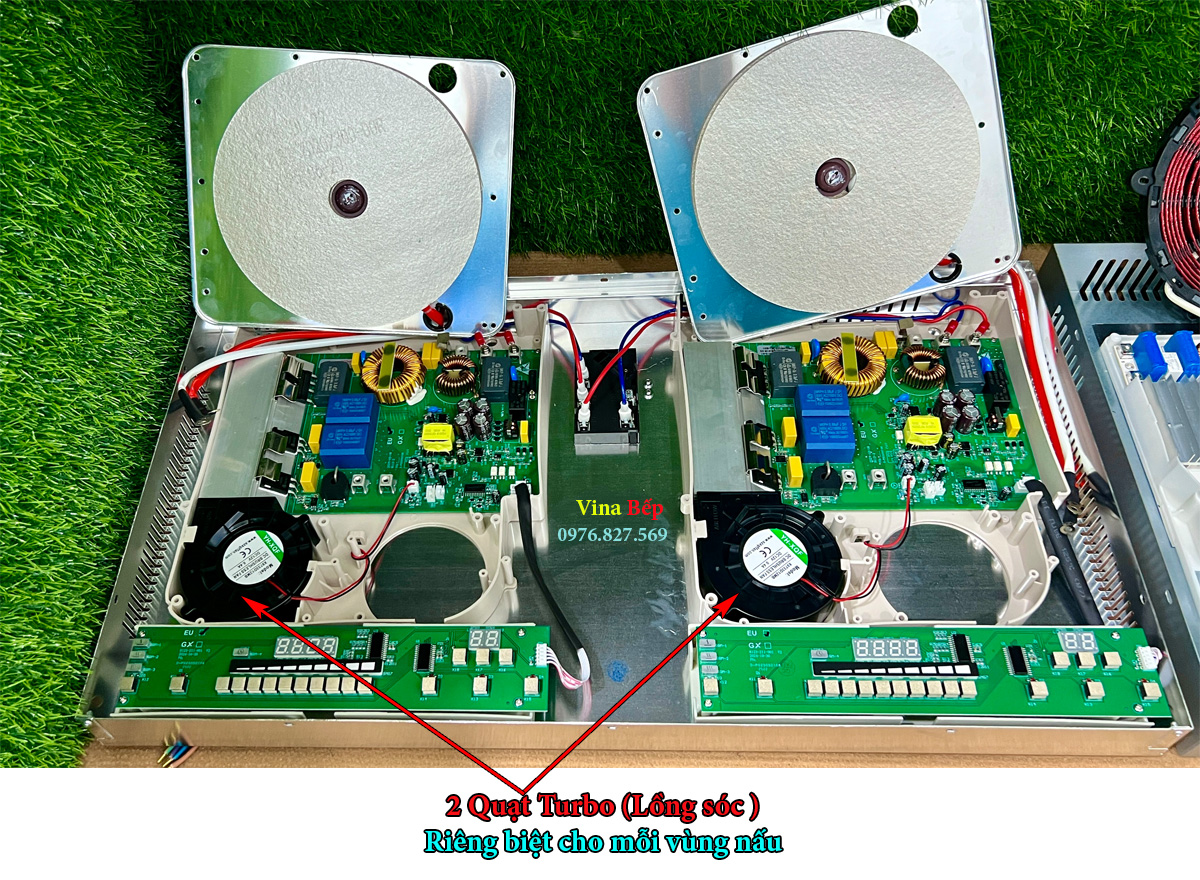 - 2 IGBT cho mỗi vùng nấu, x2 sức chịu tải, tổng cộng bếp có 4 IGBT