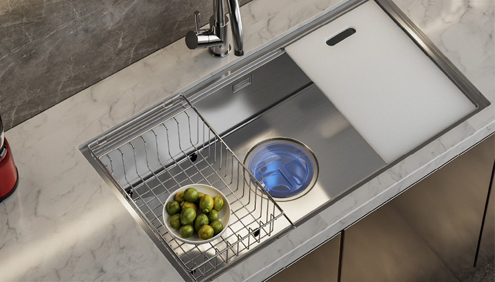 Phụ kiện: Siphon Φ185 Korean style, Rổ Inox SUS304 , Thớt nhựa