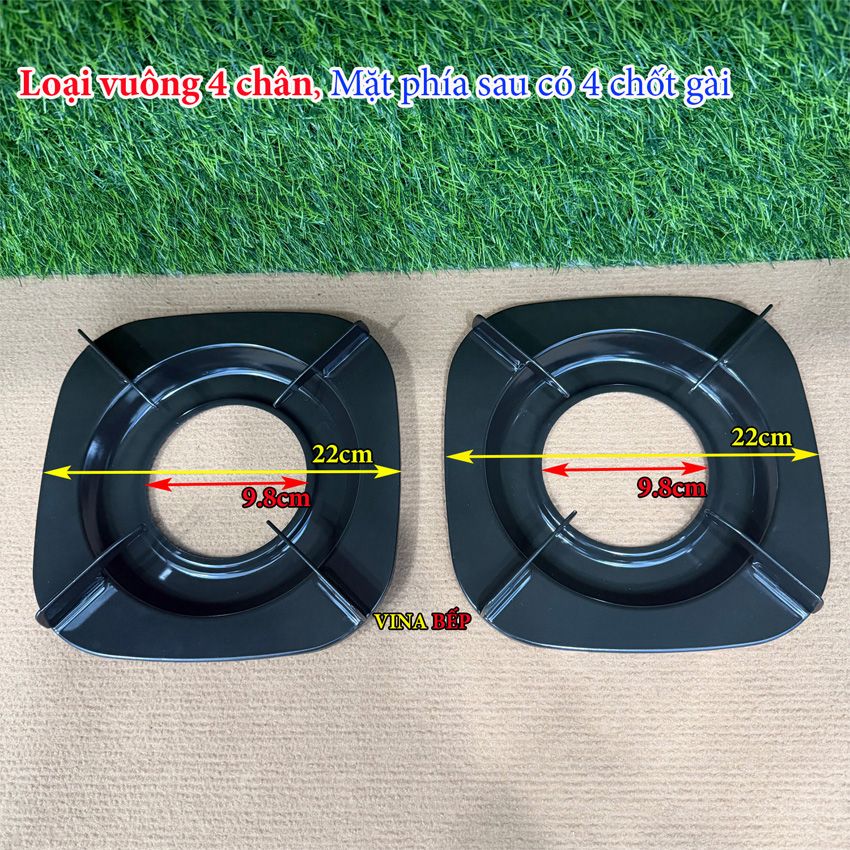 - Đặc điểm: Loại kiềng vuông, mặt trước có 4 chân kiềng, mặt dưới có 4 chốt gài để gài vào khung bếp