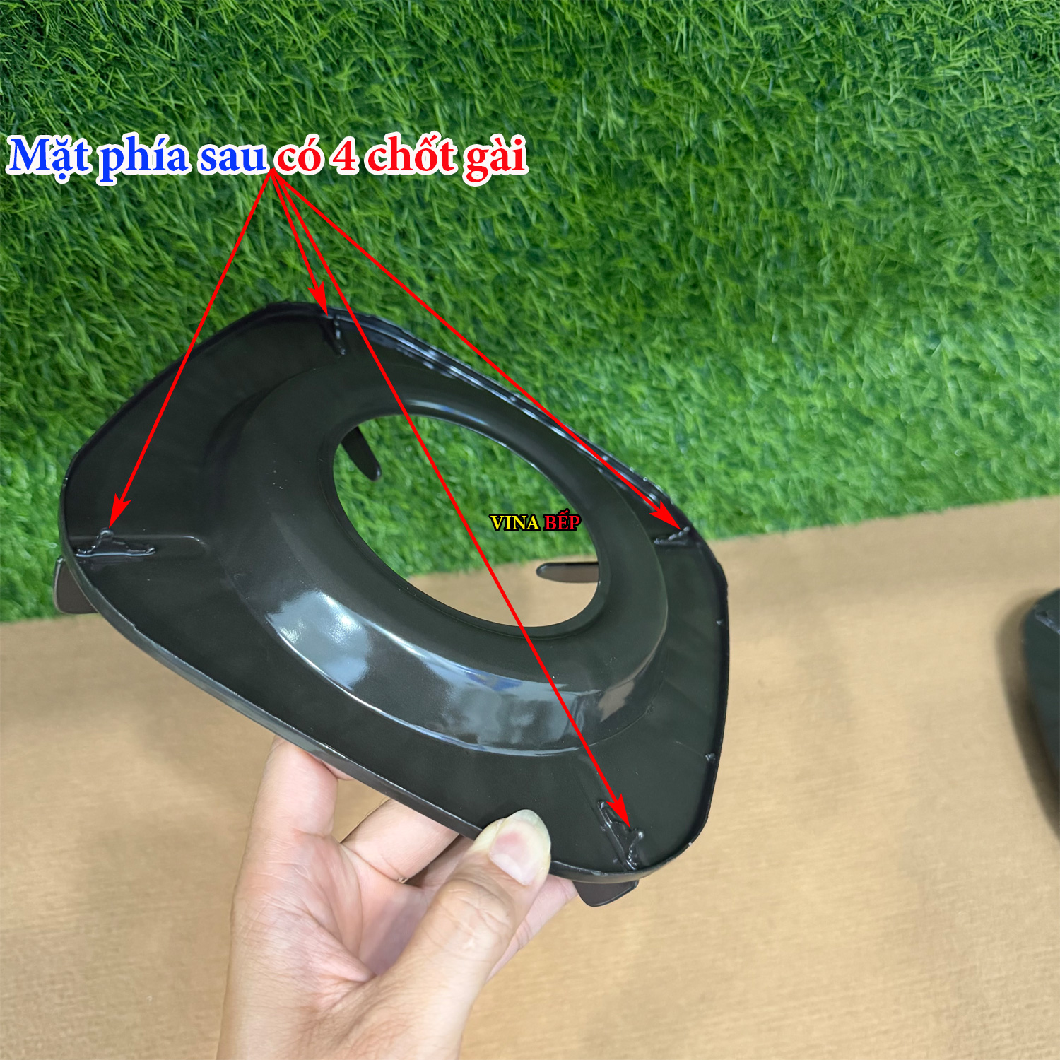- Đặc điểm: Kiểu kiềng vuông, mặt trước có 4 chân kiềng, mặt dưới có 4 chốt gài để gài vào khung bếp