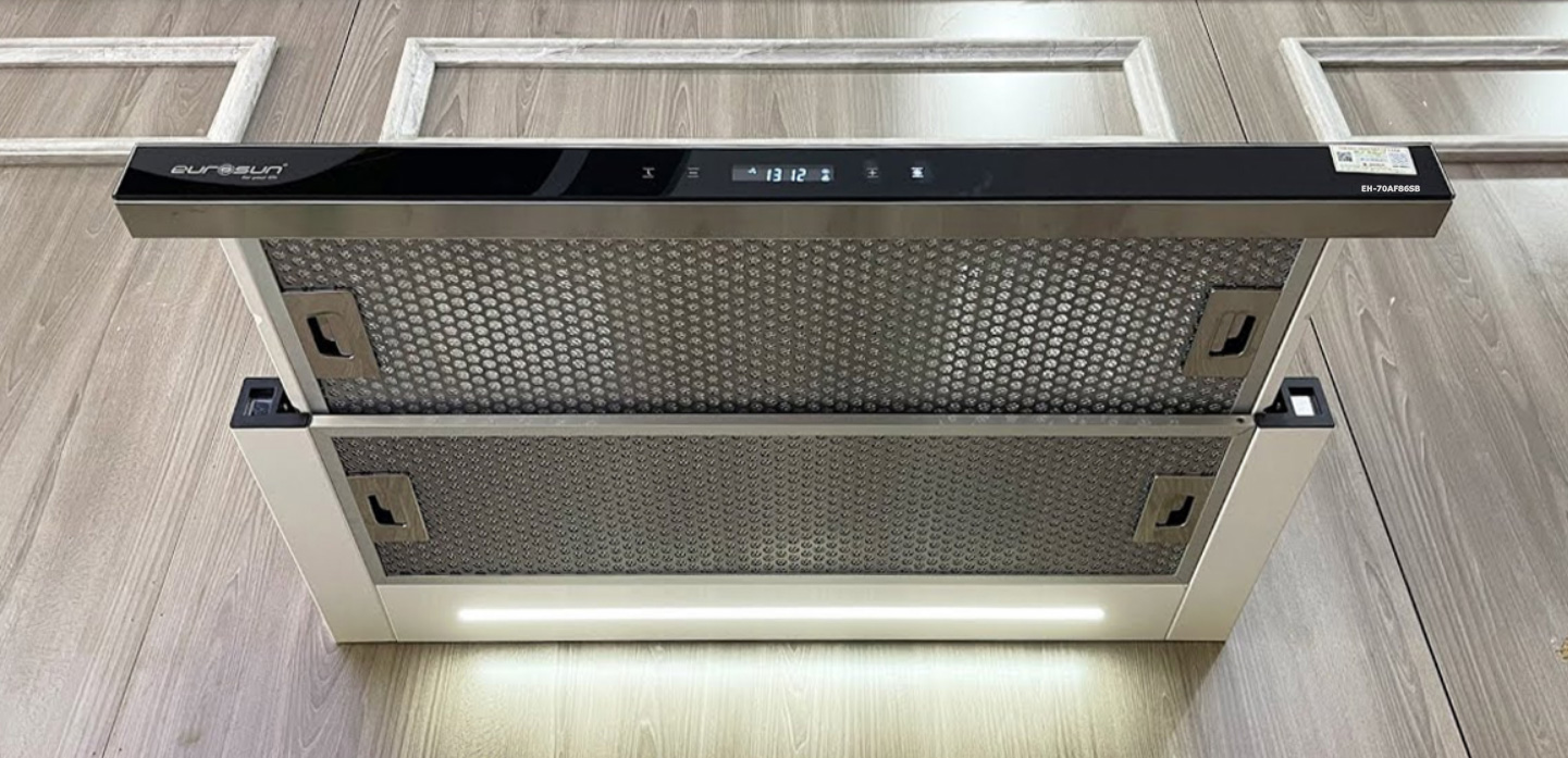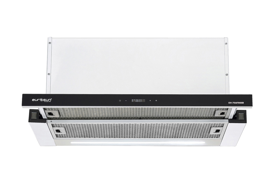 Máy Hút Mùi Âm Tủ Eurosun EH-70AF86SB là dòng máy hút mùi bếp kiểu âm tủ kích thước 700mm thiết kế có mặt trước là mặt kính màu đen.