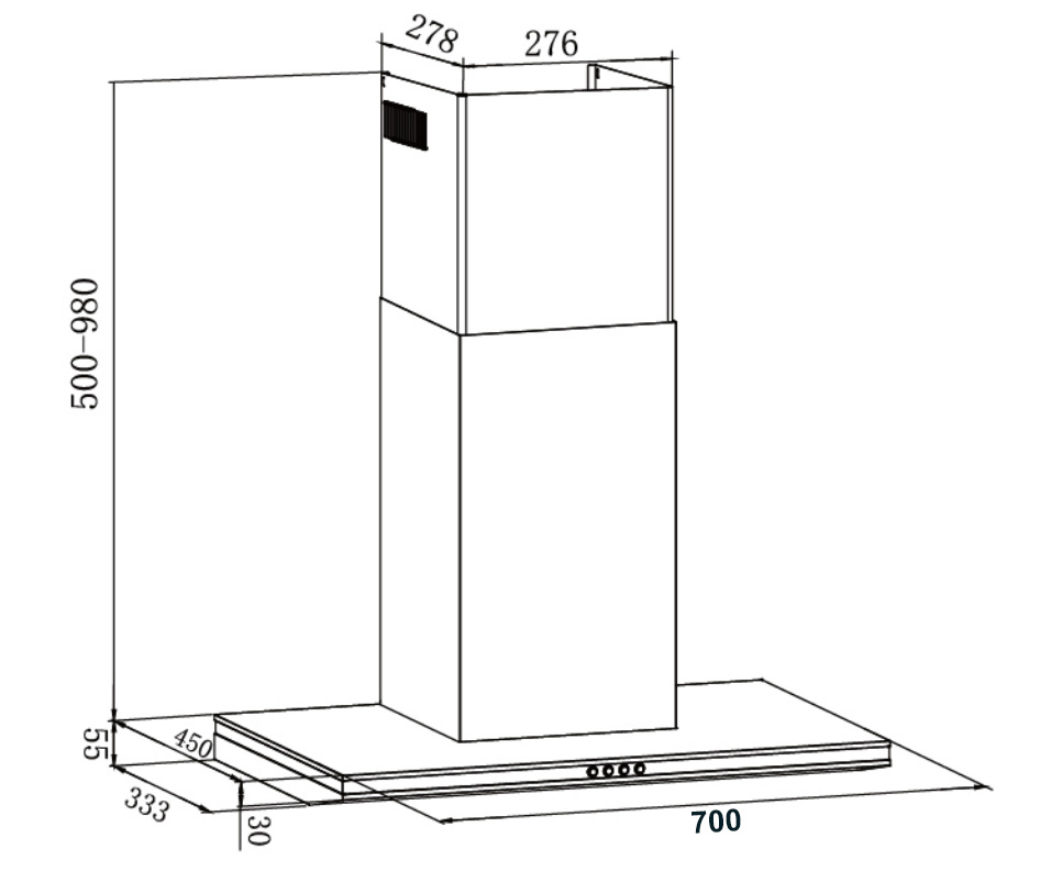 - Loại sản phẩm: Máy hút mùi kiểu chữ T lắp âm tủ hoặc áp tường