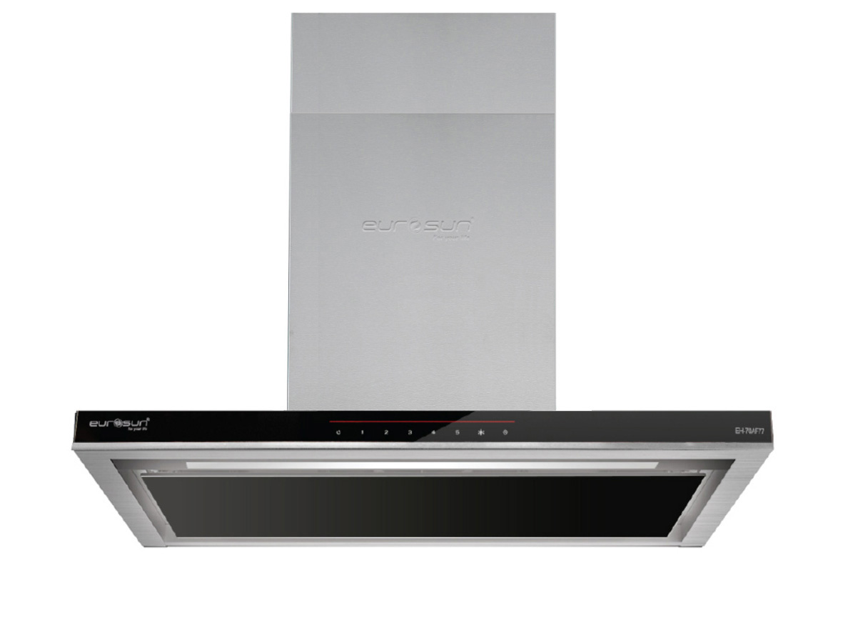 Máy Hút Mùi Eurosun EH-70AF77 là dòng máy hút mùi bếp kiểu dáng chữ T kích thước 700mm chuyên thiết kế để lắp áp tường rất sang trọng, thiết kế có mặt trước là mặt kính màu đen mỏng chỉ 4.5cm.