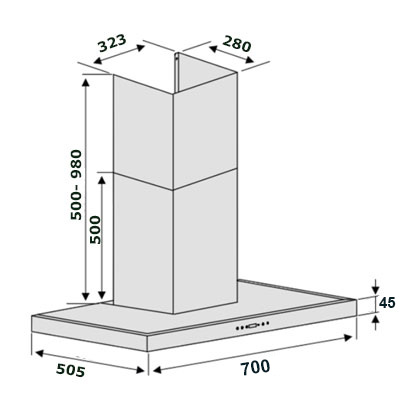 - Công suất hút mùi: 980 m3/h