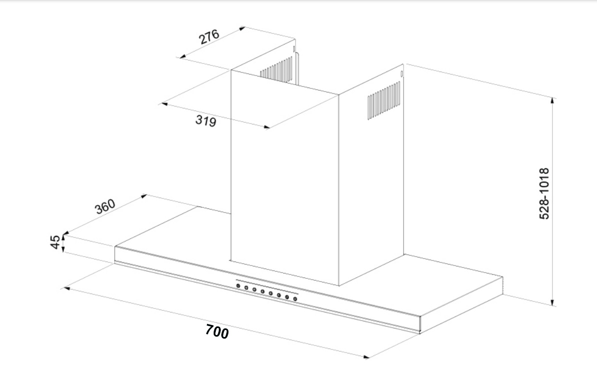 - Loại sản phẩm: Máy hút mùi gắn áp tường hoặc âm tủ