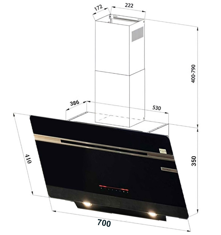 Máy Hút Mùi Eurosun EH-70CN73E là dòng máy hút mùi bếp kiểu dáng kính vát kích thước 700mm thiết kế để lắp âm tủ hoặc áp tường.