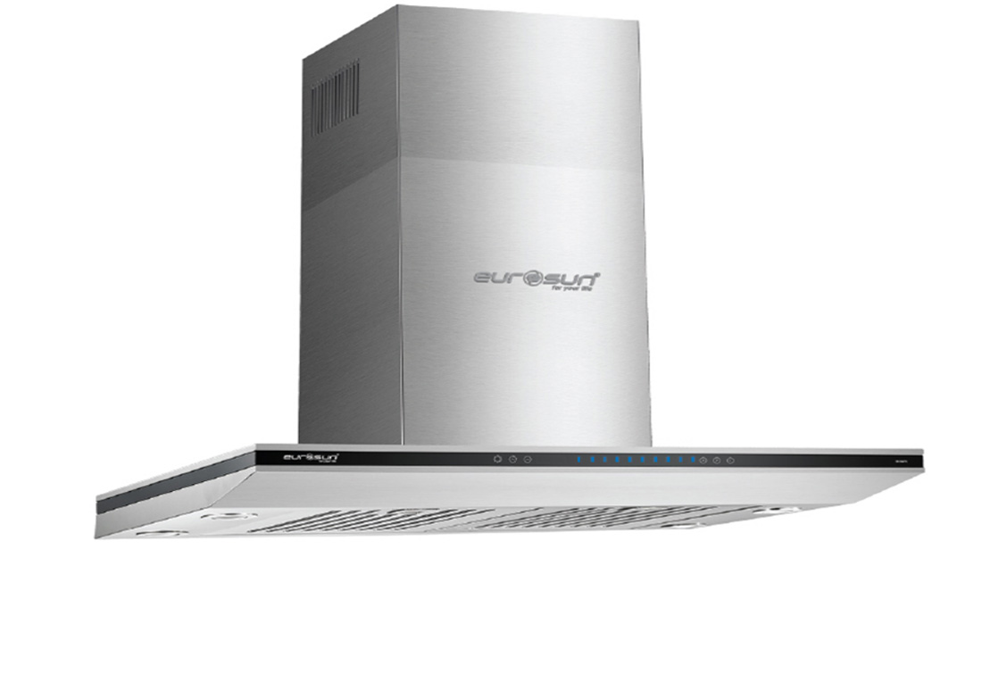 Máy Hút Mùi Eurosun EH-90AF75S là dòng máy hút mùi bếp kiểu dáng chữ T kích thước 900mm vừa có thể lắp âm tủ vừa có thể lắp áp tường sang trọng, thiết kế có mặt trước là mặt kính màu đen điều khiển cảm ứng quang với 10 tốc độ hút mùi, 4 đèn Led 3W chiếu sáng tiện ích.