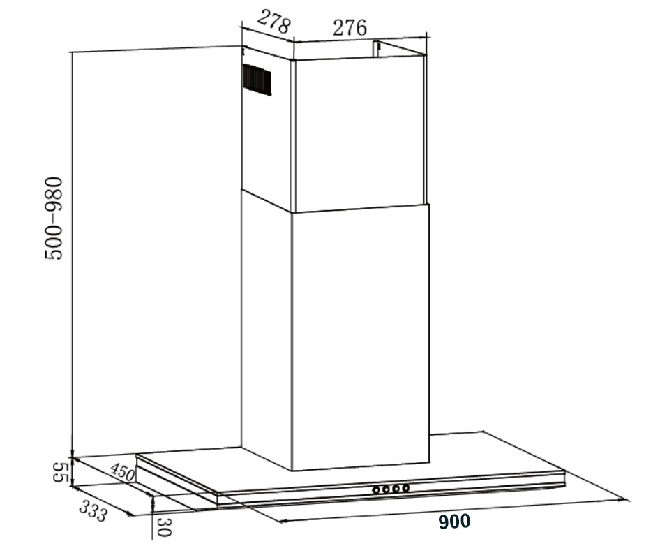 - Loại sản phẩm: Máy hút mùi kiểu chữ T lắp âm tủ hoặc áp tường