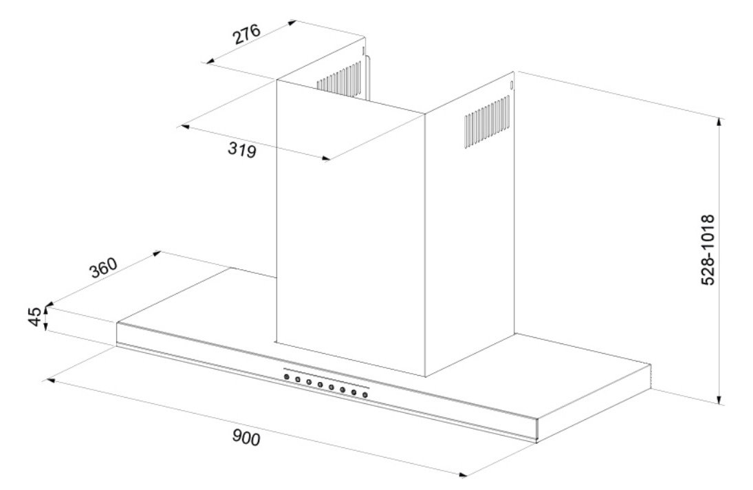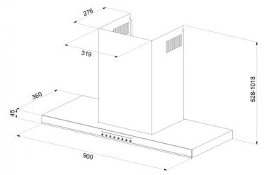 Máy Hút Mùi Eurosun EH-90AF79E là dòng máy hút mùi bếp kiểu dáng chữ T kích thước 900mm chuyên thiết kế để lắp áp tường rất sang trọng, thiết kế có mặt trước là mặt kính màu đen mỏng chỉ 4.5cm.