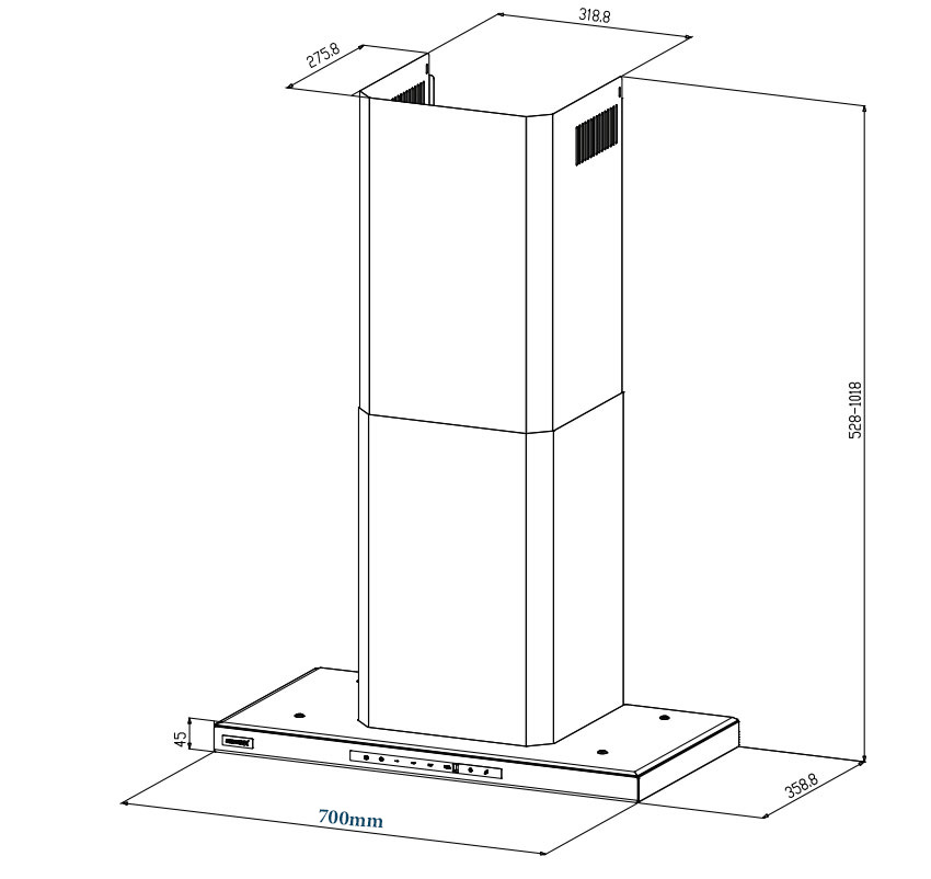 - Loại sản phẩm: Hút mùi kiểu dáng chữ T lắp âm tủ hoặc áp tường