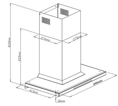 - Loại sản phẩm: Hút mùi kiểu dáng chữ T lắp âm tủ hoặc áp tường