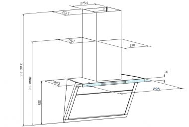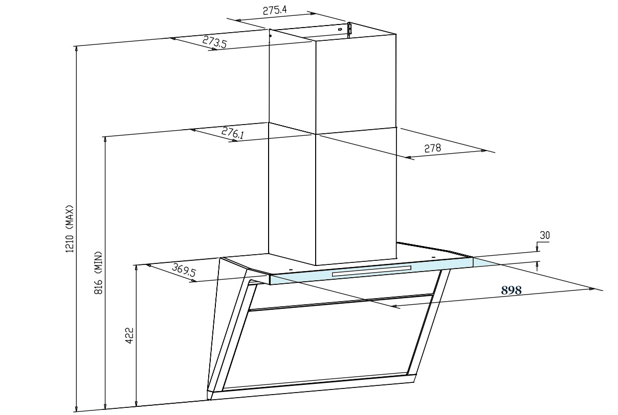 - Loại sản phẩm: Hút mùi kiểu dáng kính vát treo áp tường hoặc âm tủ