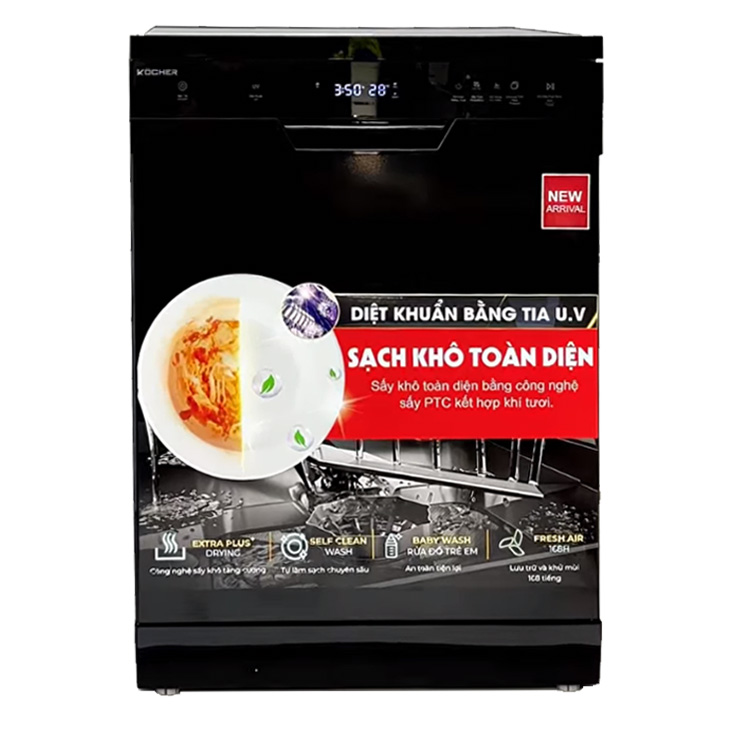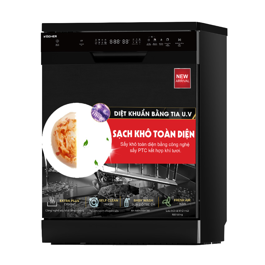 An toàn vệ sinh, tiệt trùng, diệt khuẩn là ưu tiên hàng đầu, đặc biệt là với trẻ nhỏ. Kocher X16B tiên phong với công nghệ U.V Light, cho phép bạn chủ động tiệt trùng vật dụng bằng tia U.V mạnh mẽ tại hầu hết các chu trình rửa. Tính năng rửa đồ tiệt trùng trẻ em được nhấn mạnh, đảm bảo bình sữa, núm ti, đồ chơi của bé được diệt khuẩn hiệu quả. Ngoài ra, khả năng tiệt trùng bát đũa dùng lâu ngày cũng là một điểm cộng giúp giữ vệ sinh tối đa cho đồ dùng nhà bếp của bạn.