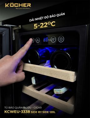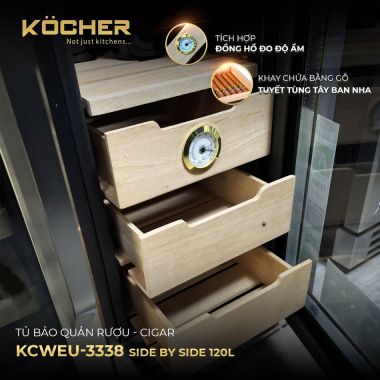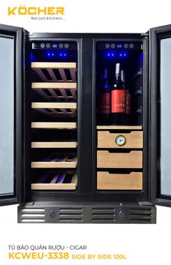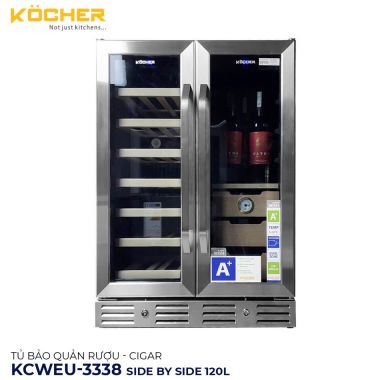 Tủ Bảo Quản Rượu – Cigar Side By Side Kocher KCWEU-3338 là dòng tủ bảo quản rượu vang tích hợp bảo quản Cigar trong 1 sản phẩm. Tủ bảo quản có dung tích lớn 120 lít, thiết kế kiểu dáng Side by side hiện đại và sang trọng.