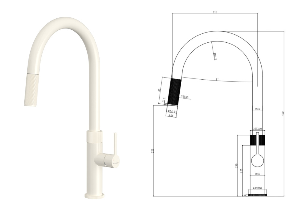 Vòi Rửa Chén Dây Rút Konox Lasi Nude